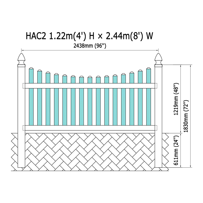 | Kerítés felső stílus | PVC 7/8 "X3" műanyag piket |
