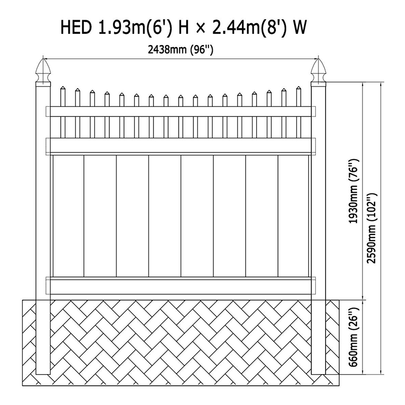 | Kerítés felső stílus | PVC adatvédelmi vinil kerítés 6 láb magasság |