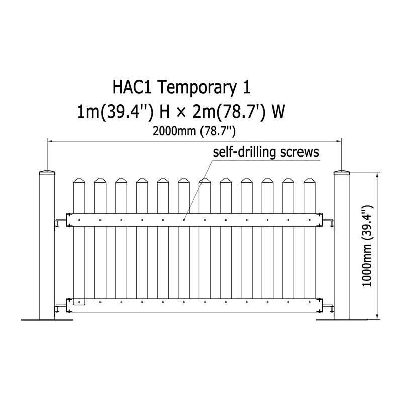 A 39 hüvelykes és a 78 hüvelyk szélességű standard magassággal épített kerítéspanelek sokoldalúak ahhoz, hogy kielégítsék a különféle térbeli igényeket. Minden panel mérete 68 ”x 32”, és két horgot tartalmaz a könnyű telepítés és stabilitás érdekében. Egy 4 "x 4" x 39 "oszlopmal, amelyet egy robusztus acéllemezrel előre rögzítenek, ezt a kerítésrendszert az erősségre és a tartósságra tervezik, így megbízható választás lehet az ideiglenes beállításokhoz.